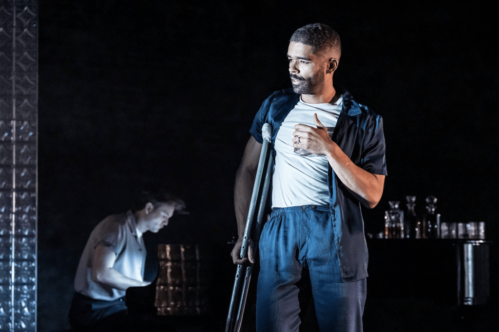 The ensemble cast dazzle and sizzle in their repressed angst. Daisy Edgar-Jones is a fiery Maggie; a different interpretation of the character, which I really enjoyed. The more ‘traditional’ Maggie is played as ever the seductress, using her body and her femininity as her weapon, but here Edgar-Jones is a determined warrior going into battle as she tries desperately to win back the affections of her disinterested husband, Brick. When she plays the ‘ace up her sleeve’ in an act of ultimate manipulation at the end of Act Three, it is a journey that she has carved out for herself from her first word uttered, and it leaves you with immense sympathy for this broken woman who is throwing everything has she left at attempting to get her life back. Though Edgar-Jones takes a little while to fully lean into the character, one can hardly blame her with the everest-level of monologue and exposition she is given in Act One. Clare Burt as Big Mama similarly reinvents Big Mama, grounding her with resolve and making her character all the more tragic in her toxic relationship with Big Daddy. Lennie James as Big Daddy oozes with foreboding as he commands the stage. However, despite these strong performances, if Kingsley Ben-Adir was on stage, it was near impossible to watch anything else – he was utterly captivating. Brick, usually completely detached and stoic, instead circles a light bemusement at watching his world crumble around him – the impact as an audience member is electric. Despair and hopelessness drip from him – no easy feat as he is almost completely silent in the first act, despite never leaving the stage. It was one of the most moving performances I’ve seen in a long time.